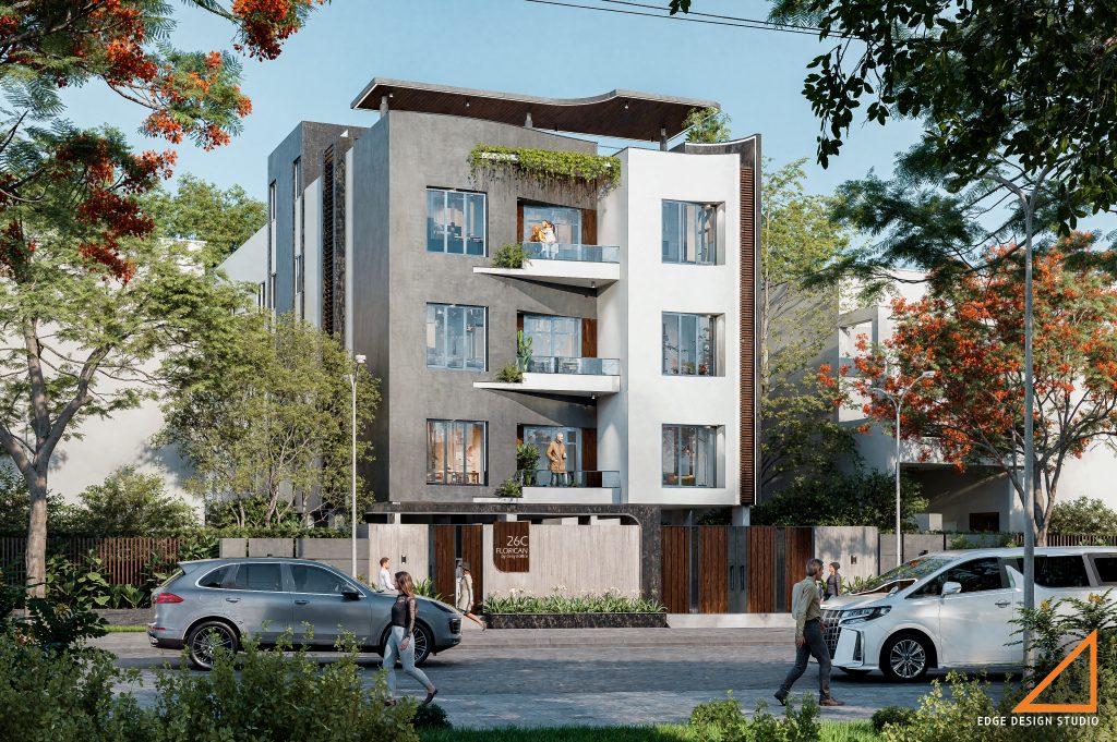 Type – Residential | scope – Architecture + Interior | Location – Madurai | Plot Area – 12000 SFT | Built up Area – 29920 SFT / 34670 SFT | Number of Floors – Stilt + 4 | Facing – West